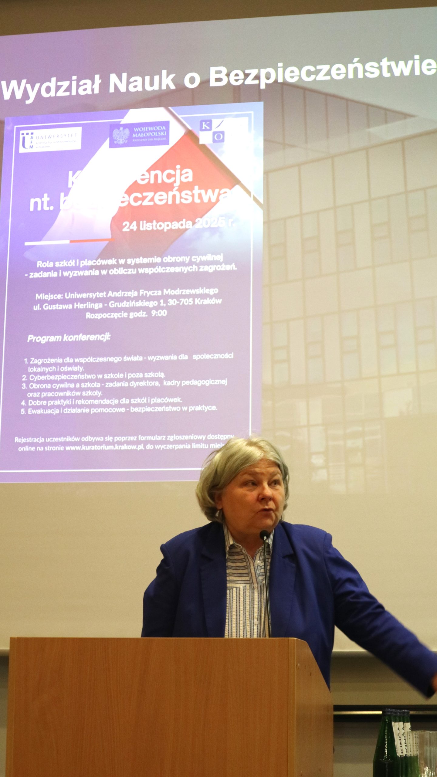 Konferencję w Krakowie otworzyła Małopolski Wicekurator Oświaty Pani Katarzyna Mitka, podkreślając znaczenie edukacji jako fundamentu budowania bezpieczeństwa oraz przygotowania młodego pokolenia do funkcjonowania w świecie pełnym wyzwań.
