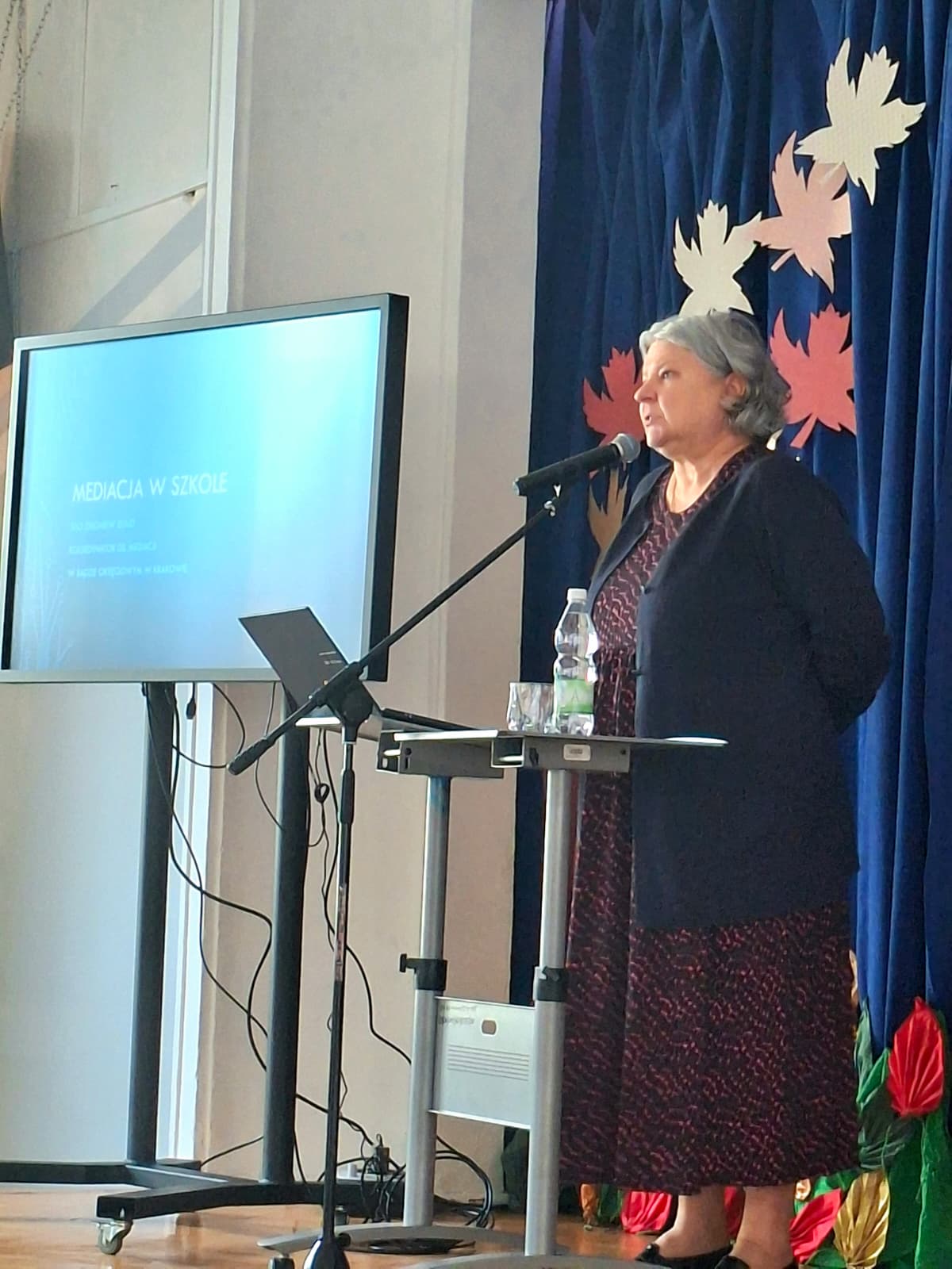 Konferencję prowadziła Elżbieta Bzdek – starszy wizytator Kuratorium Oświaty w Krakowie, mediator stały w Sądzie Okręgowym w Krakowie, Z-ca Rzecznika Dyscyplinarnego dla Nauczycieli przy Wojewodzie Małopolskim.