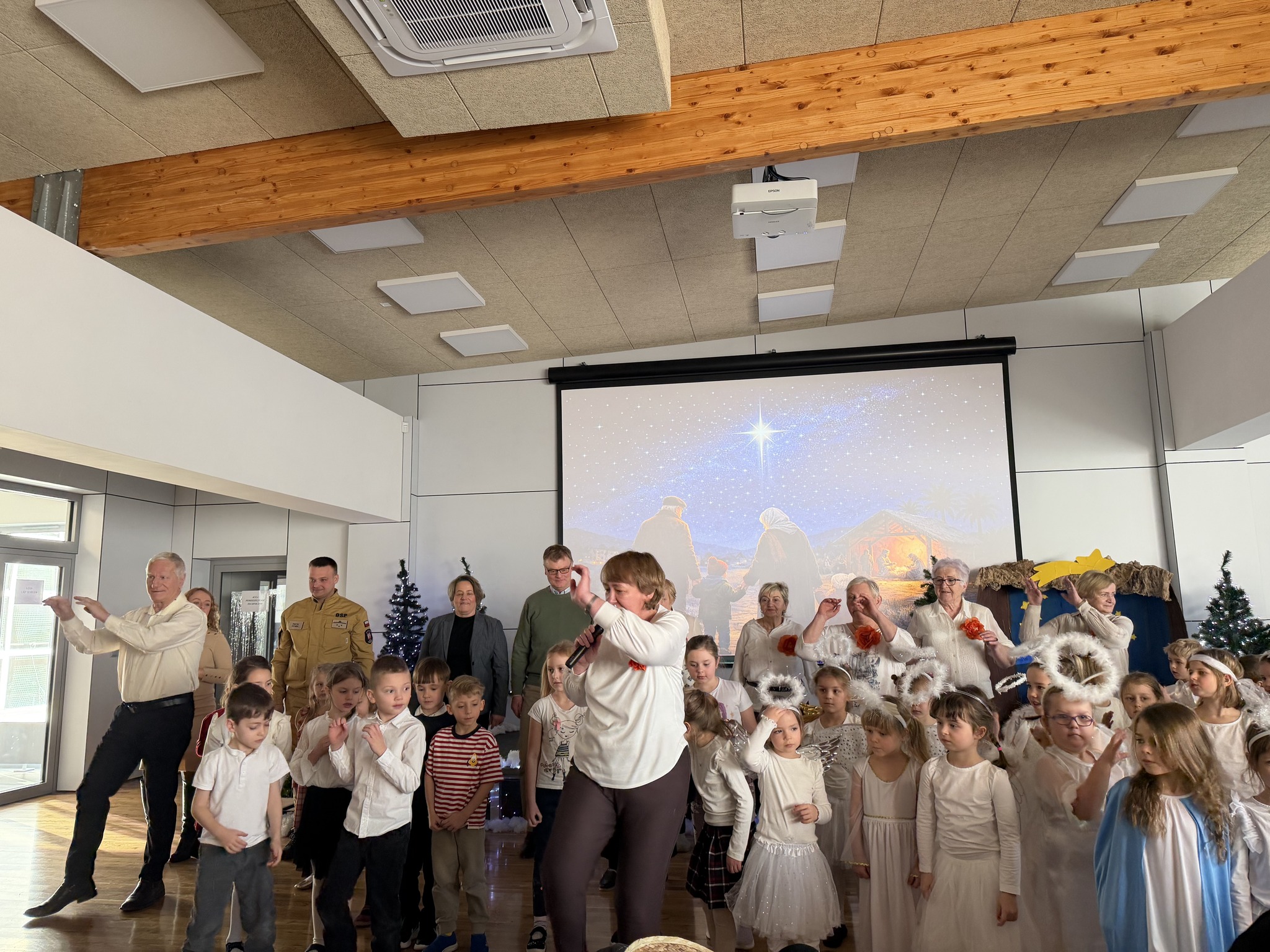 Uzupełnieniem programu był gościnny występ seniorów z klubów „Złota Jesień” oraz „Senior +”, który wprowadził wszystkich w wyjątkowy, świąteczny nastrój, podkreślając integracje międzypokoleniową, łączącą seniorów i najmłodszych mieszkańców gminy.