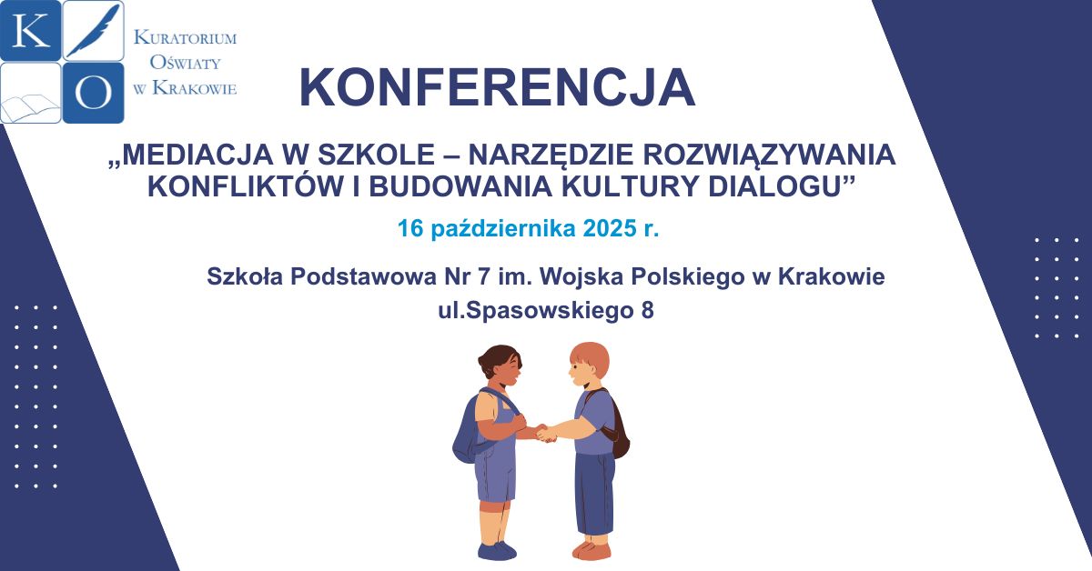 Kuratorium Oświaty w Krakowie we współpracy z Sądem Okręgowym w Krakowie ma zaszczyt zaprosić Państwa na konferencję pt.„Mediacja w szkole – narzędzie rozwiązywania konfliktów i budowania kultury dialogu”, organizowaną z okazji Międzynarodowego Dnia Mediacji.