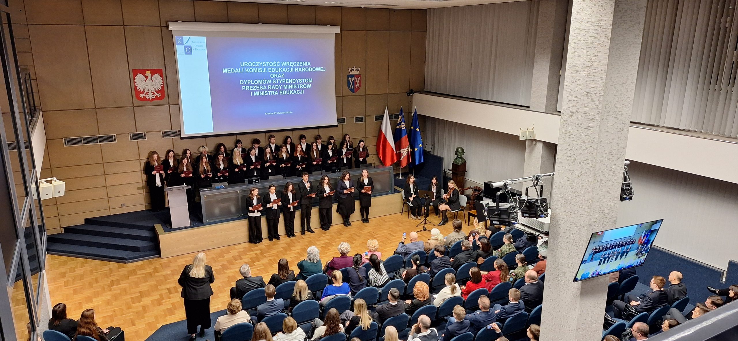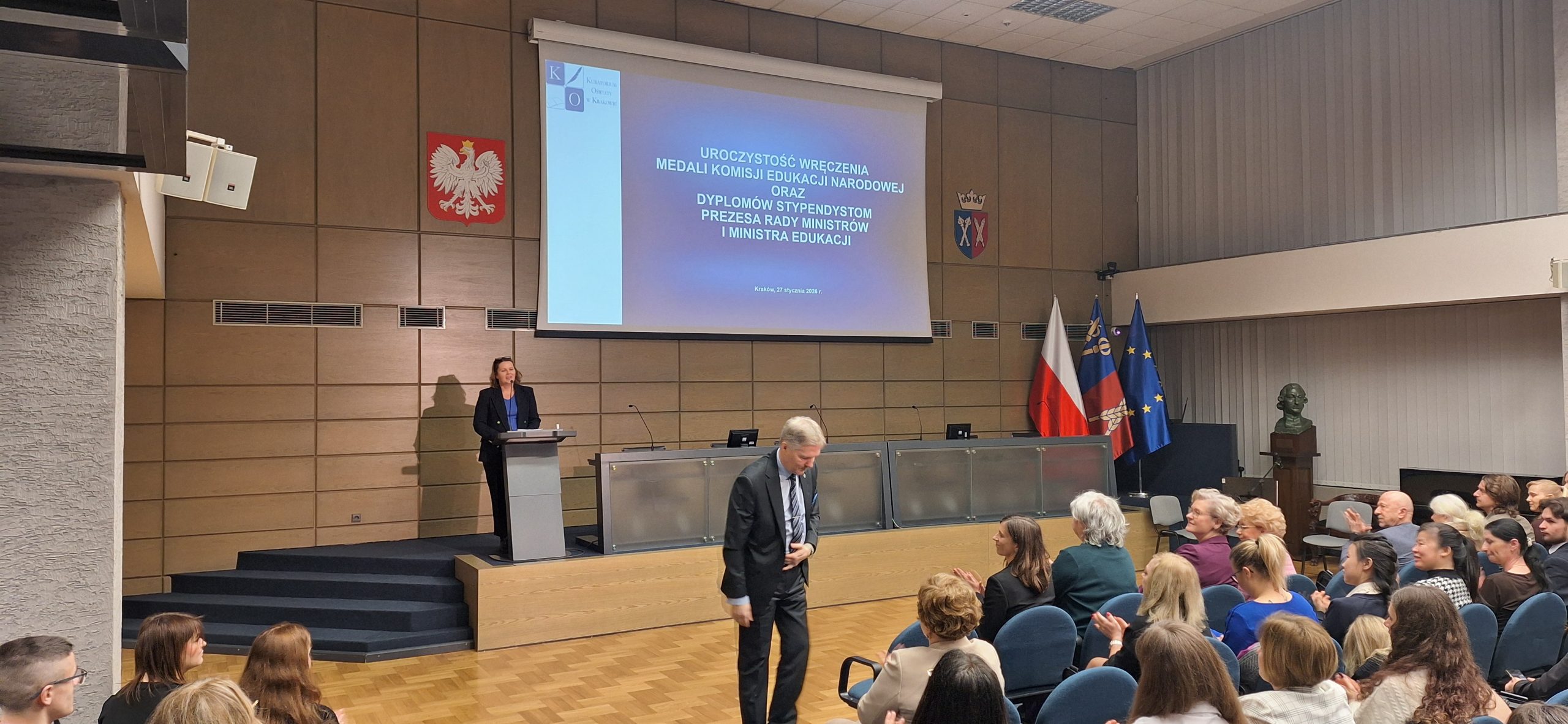 27 stycznia 2026 r. w Auli Uniwersytetu Rolniczego im. Hugona Kołłątaja w Krakowie Małopolski Kurator Oświaty gościł Nauczycieli uhonorowanych Medalem Komisji Edukacji Narodowej oraz Stypendystów Prezesa Rady Ministrów i Ministra Edukacji.